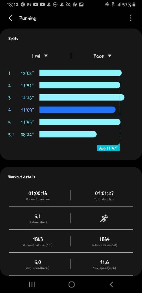 I was pleased with my strong finish for having gone 5 miles.