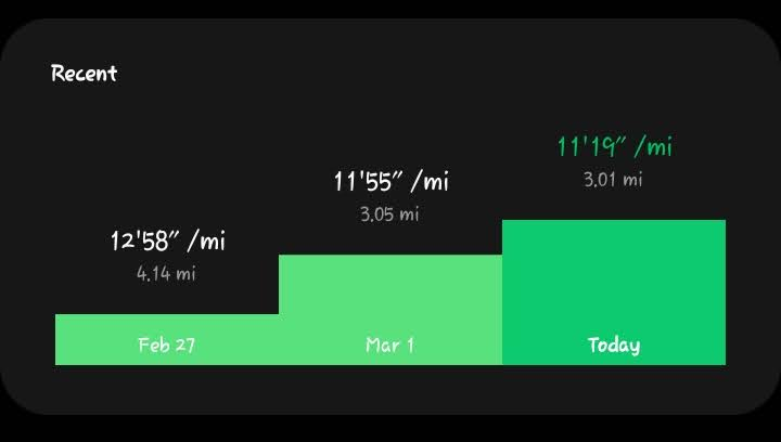 And I’m getting the lead out, slowly, but surely, with my average pace going down (my previous 3 mile run before the 4 mile run on Feb 27 I had a pace of around 12’22” or something like that).