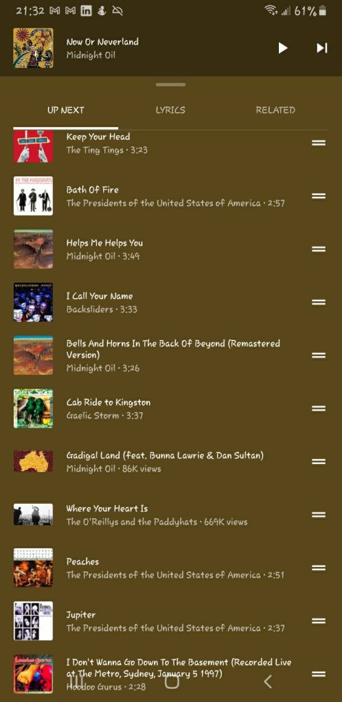 My playlist was kind of crappy, and there’s not much point in saying anything about it. I had to skip a lot, re-arrange a lot. Not much good info for creating future playlists.