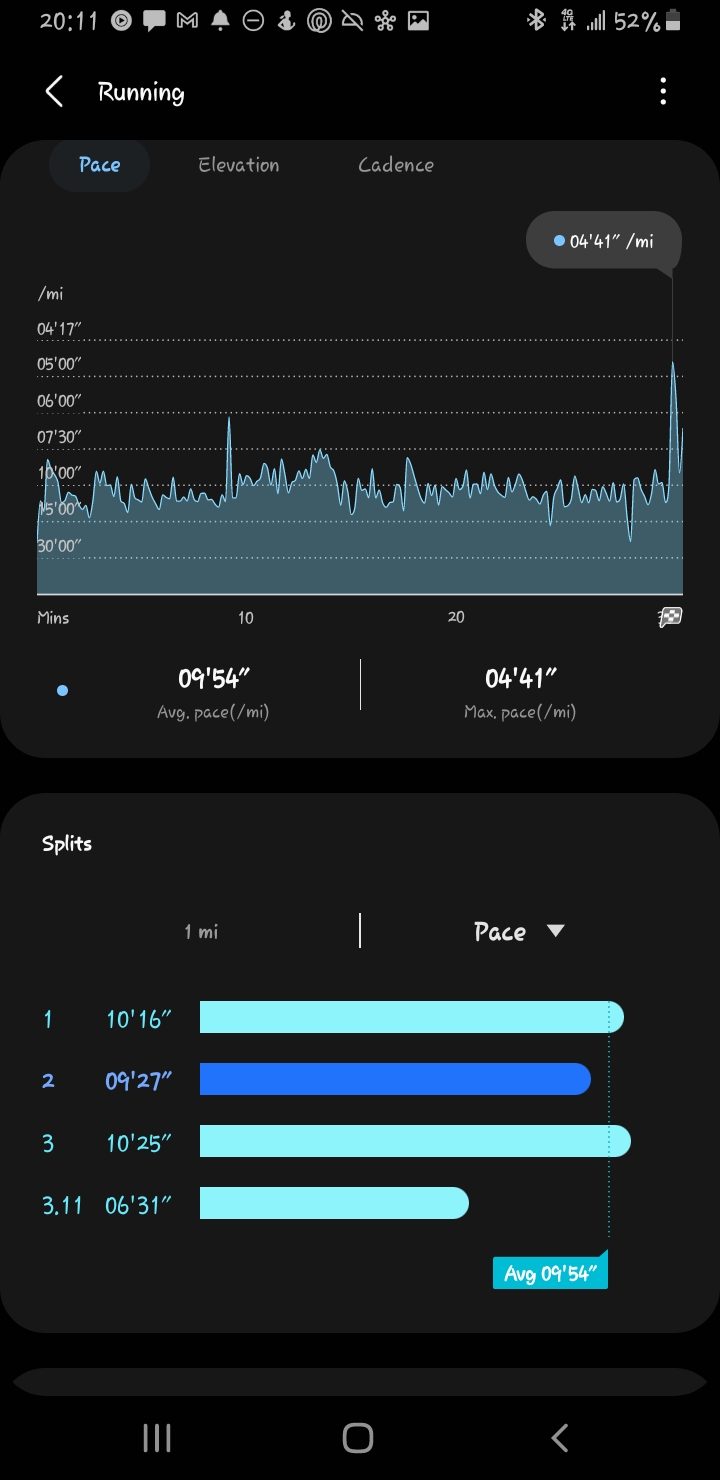 My last 0.1 mile overall was slower than it should have been because I tried to see what my instantaneous pace was while running